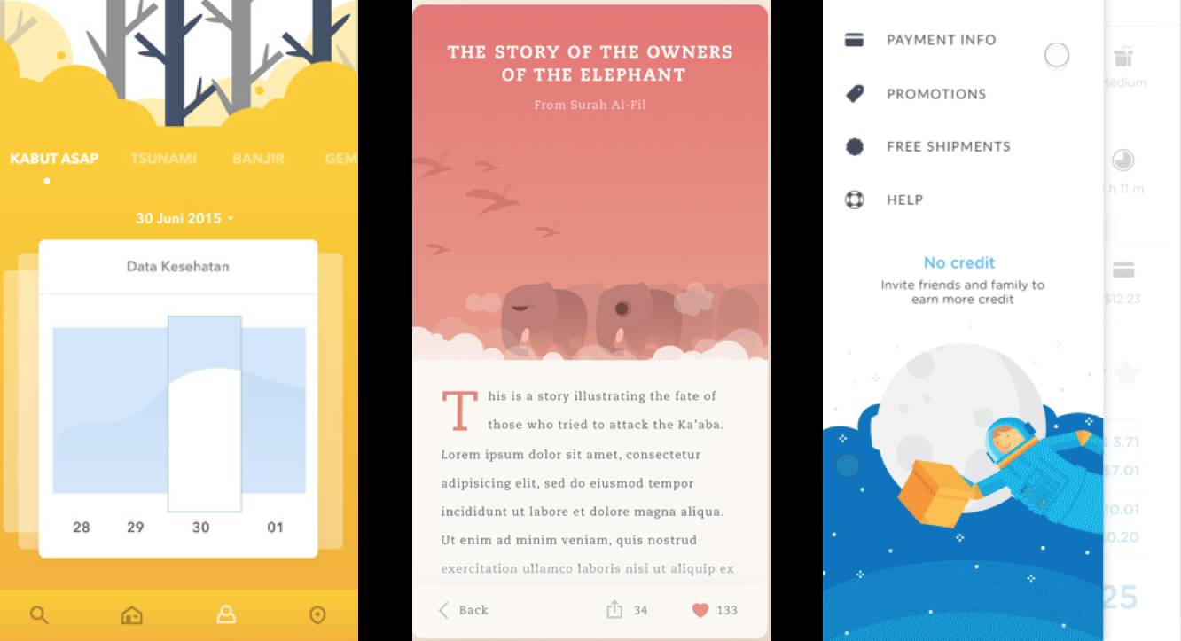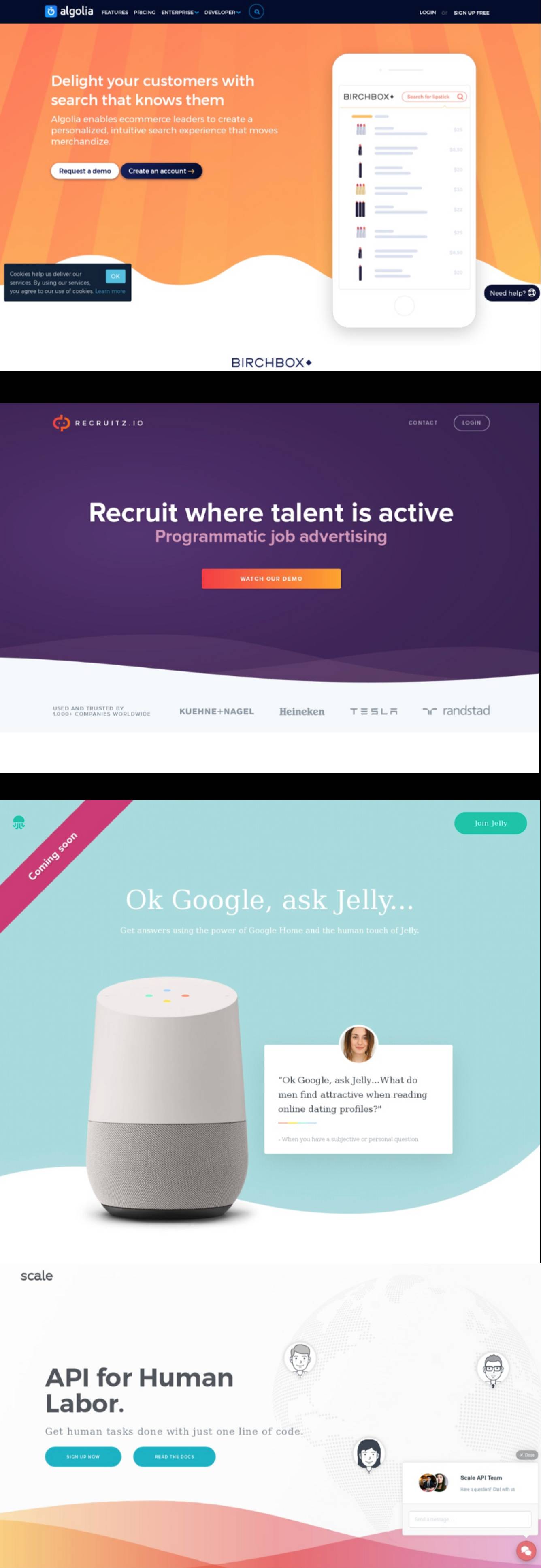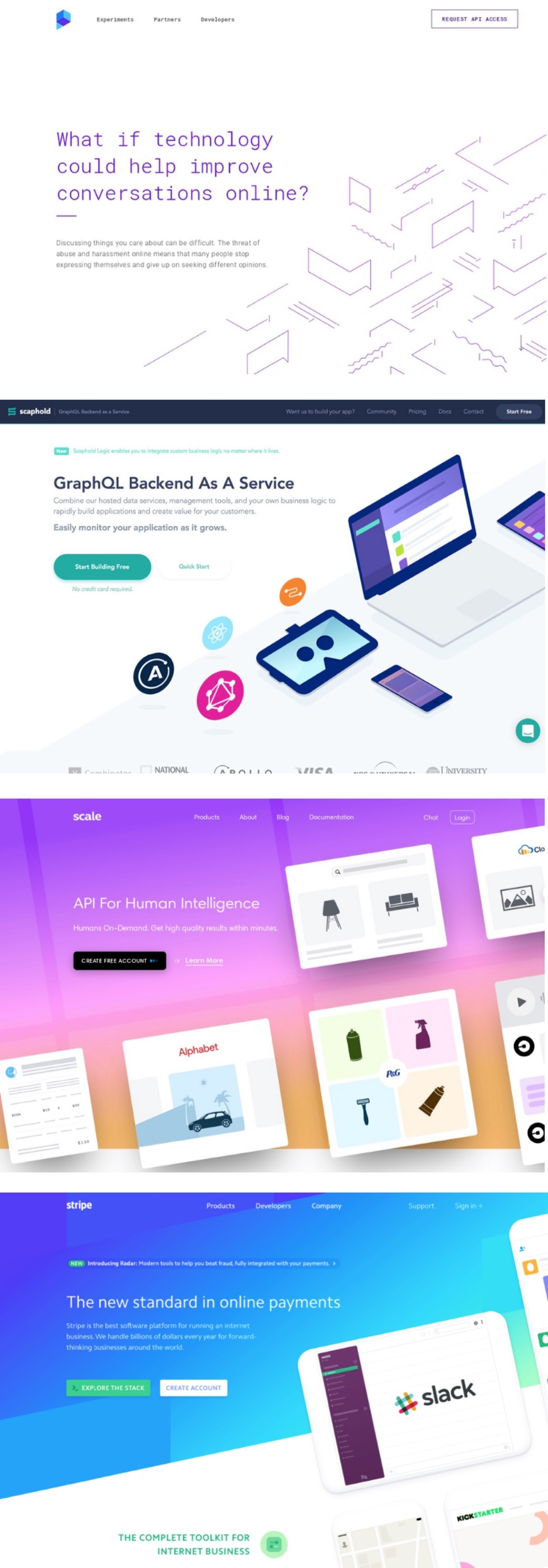 17年在很多新的設計趨勢里面有種風格,一般常在頁面頭部才用不規則弧線幾何圖形的形式作為頭部主視覺,區別于傳統長方形,形成設計差異性,同時在不規則弧線處理上常用和頭圖或者插畫進行結合,有時候也會采用線條形式出現。