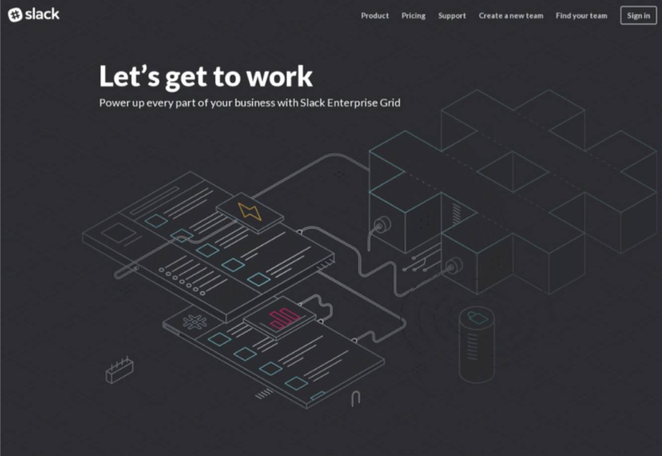 slack的官網上主banner圖形采用的這種設計方法,讓主頁更有空間感。