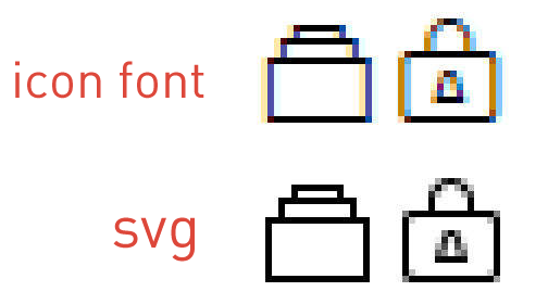 icon font采用的是字體渲染,icon font在一倍屏幕下渲染效果并不好,在細節部分鋸齒還是很明顯的,SVG上面我說過它是圖形所以在瀏覽器中使用的是圖形渲染,所以SVG卻沒有這種問題,請看下圖對比: