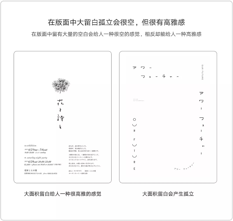 在版面中留有大量的空白會給人一種很空的感覺,相反卻能給人一種高雅感。
