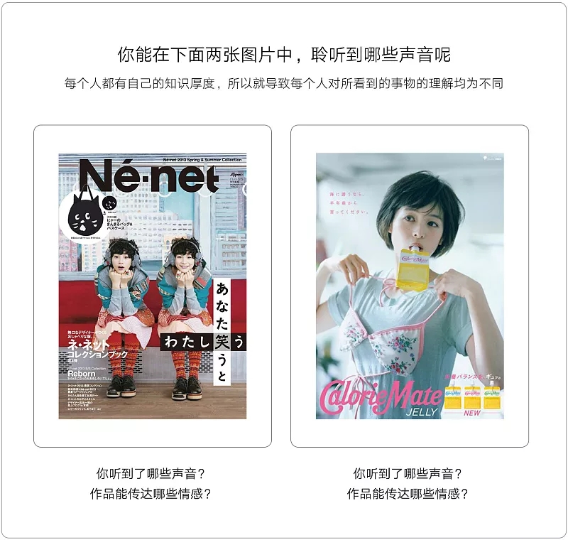 把平面設(shè)計(jì)可以比作音樂,這個又涉及到另一個知識點(diǎn)了,那就是聆聽作品中的“聲音”。這屬于高階設(shè)計(jì)方法上層的高階設(shè)計(jì)思維了。意思是優(yōu)秀的設(shè)計(jì)作品能傳達(dá)出它所表達(dá)的“聲音”和“語言”,這里就不多說了,如果很想了解這塊的知識,建議讀一下迪耶?薩迪奇的《設(shè)計(jì)的語言》。