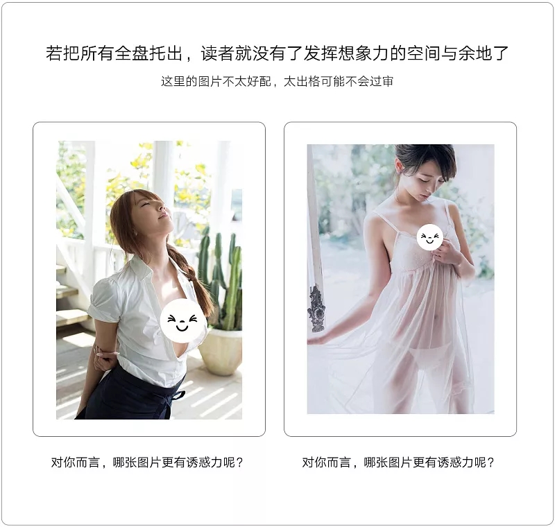 人的眼睛有聯(lián)想填充不足部分的力量,這就是人的想象力。若把所有素材都一五一十地全盤托出,讀者就沒有了發(fā)揮想象力的空間與余地了。這就像進(jìn)行交合時,一絲不掛的女人肯定沒有著裝透露著朦朧美的女人更具有吸引力與魅力。