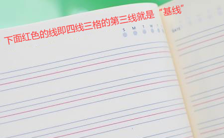 四線三格的第三格,即基線