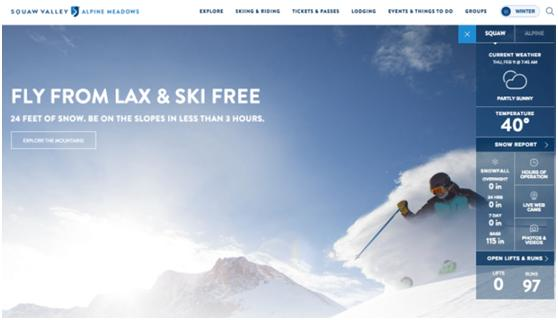 美國滑雪度假圣地Squaw Valley Alpine Meadows將其主頁根據它的主要客戶群體進行個性化設計。通過向每組訪客展示與他們相關的內容,這些個性化體驗還提高了轉化率和收入。
