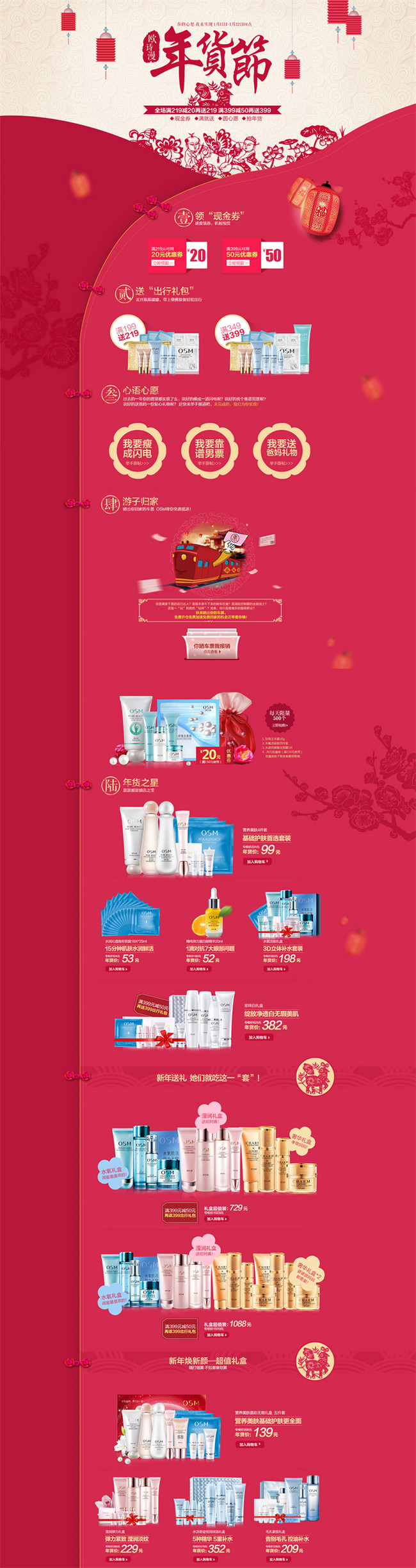 歐詩漫品牌網頁設計采中國旗袍服飾的元素,還有中國元素剪紙,燈籠等,表現歐詩漫品牌對中國女性、對自己品牌產品的用心。
