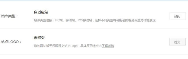 點開后看一下自己有沒有設置LOGO的權限,因為百度對優質的網站才有提交LOGO的權限,如果站點質量不夠,只有等之后把質量提升上來后才可以在這里提交。如下圖: