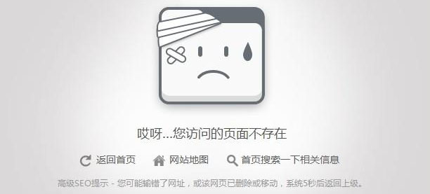 最后404頁面本身作為一種無效鏈接的代言人,通常曝光度不高,但是為了更好的提升網站的信任度,對于這個網頁也要精心設計,其實很多門戶型網站上的404頁面都具有一定的代表性。另外404頁面除了自身具有人工跳轉功能之外,還能夠通過自動跳轉,這樣能夠更好的體現這種用戶體驗優勢,這也是網站404頁面重要性的表現。