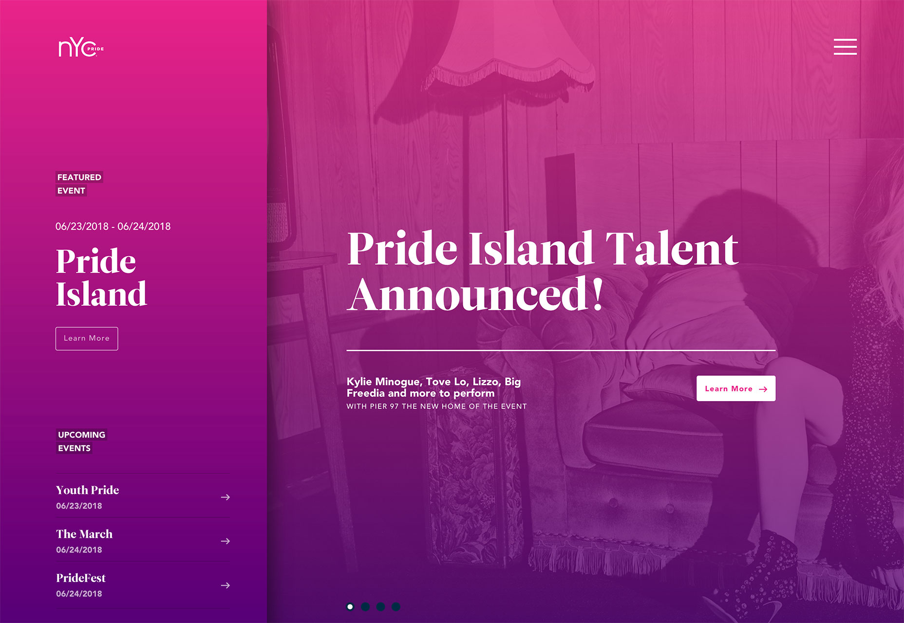 漸變的背景能夠幫助用戶更好地感知和理解設計。當眼睛感知到屏幕上的色調和明暗變化的時候,會有意識地注意到特定的色彩和視覺焦點。漸變是非常有有用的吸引人的視覺工具,為很多設計項目增色不少。雖然使用漸變的方法很多,但是最流行的依然是將圖片和文本放置在有漸變色彩的背景上。下面的案例就是這么做的。柔和的色彩讓視線更容易找到被安放的地方,空曠的背景因為漸變而顯得富有高級感,前景元素擁有不錯的可讀性,底部的“發現更多”也更容易被人注意到。