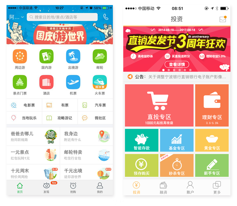 一個app或網站可能會有好幾個主要且同級別的功能和分區。這時,設計師需要對產品的信息內容和功能模塊進行整體規劃,建立界面的基本格局來幫助用戶在視覺上進行更好的區分。配色可以很好的幫助設計師實現這一目標。
