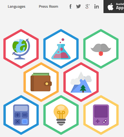 第一,做好扁平化設計,只需秉承一個理念,那就是簡單。設計者應舍得放棄,把以前用來將元素裝飾成3D效果的紋理、透視、陰影等的統統拋掉,用最簡單的表達方式展示最簡單的元素,結合抽象同樣可以把內容展示得富有吸引力。扁平化的效果尤其在移動設備上更受到歡迎,如果網站的受眾用戶集中的移動用戶上,那么選擇扁平化設計一定不會錯,它帶給用戶的體驗更加愉悅。如下一個頁面則是用典型的符號表達的內容元素。