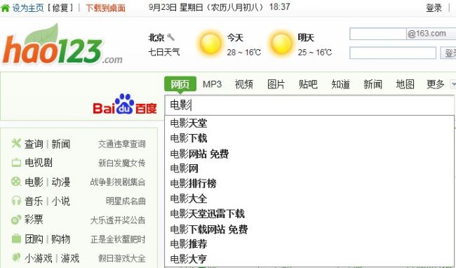 一直在用hao123的導(dǎo)航,主要是習(xí)慣了之后就不愿意改變。今天想看電影,點(diǎn)開hao123的電影導(dǎo)航,找了半天沒有自己想看的電影,但是因?yàn)槁殬I(yè)習(xí)慣就特別留意了下hao123的一些SEO設(shè)置,想從中學(xué)習(xí)一些SEO經(jīng)驗(yàn),畢竟hao123是百度旗下在國內(nèi)比較出色的導(dǎo)航類站點(diǎn),其中有幾處還是值得大家學(xué)習(xí)和借鑒的。