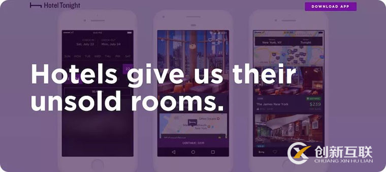 Hotel Tonight酒店是當(dāng)天預(yù)訂酒店客房的工具。 著陸頁的獨特設(shè)計使網(wǎng)頁成為網(wǎng)頁開發(fā)者的獨特風(fēng)格。 這些圖片的排版和處理有一個非常清晰的處理思路,一個好的搭配會給你一種探索的感覺。 該頁面使用全局視差滾動來呈現(xiàn)獨特的布局。