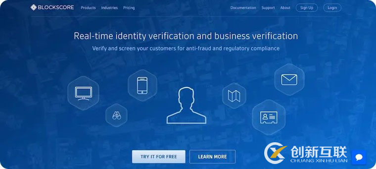 BlockScore是一個解決身份盜用的身份驗證服務(wù)網(wǎng)站。 網(wǎng)站設(shè)計也使用城市的鳥瞰圖,白色文字和圖標(biāo),充滿質(zhì)感。