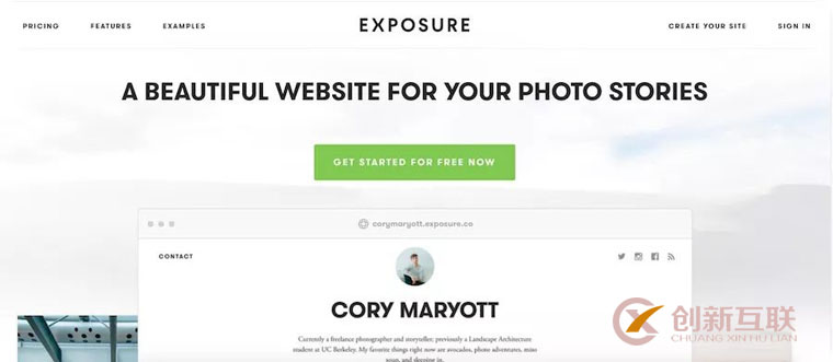 如果你喜歡用圖像來講故事,那么你不能錯過曝光。 與傳統(tǒng)的照片托管和演示平臺不同,Exposure的優(yōu)勢在于使用圖像呈現(xiàn)故事的全部功能以及最終的高品質(zhì)閱讀體驗。 頁面介紹令人耳目一新,呼吸強烈。 中間的CTA按鈕清楚地呼叫用戶:開始記錄你的美妙旅程。