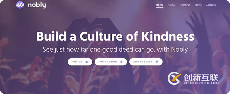 Nobly是一款社交應(yīng)用程序,您可以與想要為世界做一件好事的所有人聯(lián)系。 打開網(wǎng)站后,您會看到主頁的大圖,它吸引了人們的注意力,大膽的色彩和點綴。 該網(wǎng)站使用現(xiàn)在流行的簡單布局和單頁滾動設(shè)計。