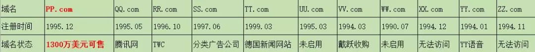 近期終端收購(gòu)兩聲的動(dòng)靜可謂“聲勢(shì)浩大”,二疊字母全球限量26枚,16枚域名已被建站,其中國(guó)內(nèi)企業(yè)就有騰訊網(wǎng)QQ.com、YY語(yǔ)音YY.com、哥哥游戲GG.com以及百度游戲KK.com。