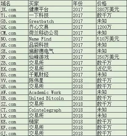 近兩年交易的二字母域名,價(jià)格也都高于千萬(wàn)