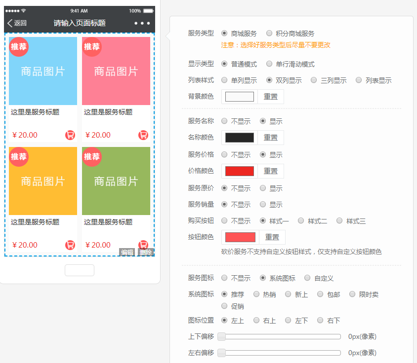 不可否認,商品詳情是展示商品信息的主要位置,用戶購買與否很大程度上取決于商品詳情頁面的設計。但是在進入商品詳情頁面之前,首先面對的是商品列表頁面,商品列表頁面設置的好壞決定了用戶進入詳情頁面的概率,所以商品列表組件在配置的時候也是比較復雜的,主要配置信息有: