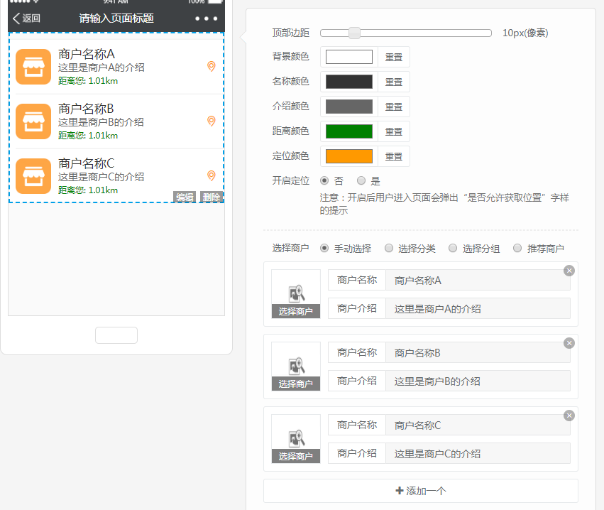 店鋪裝修店鋪首先是頁面的選擇,然后配置組件信息。