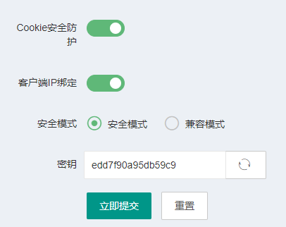 第一個(gè)為是否開啟Cookie安全防護(hù),默認(rèn)為關(guān)閉;