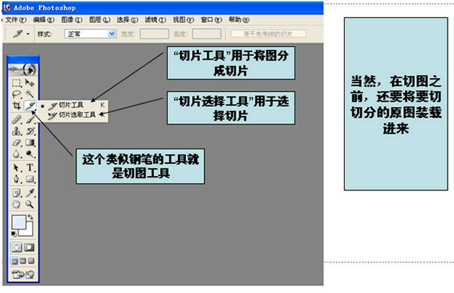切片有矩形切片和多邊形切片。創(chuàng)建切片的禪作很簡單.需要用到slice Tool工具. Slice Tool(切片)工具在工具箱中的位置。
