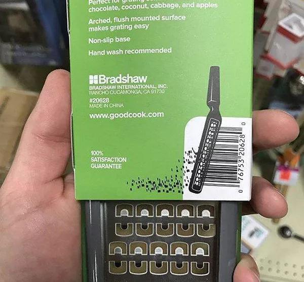刨絲器的條形碼與上面的剃胡刀有異曲同工之秒,都是同樣的原理,不過這個刨絲器力道好像很猛一點,覺得條形碼隨時會被刨干凈。