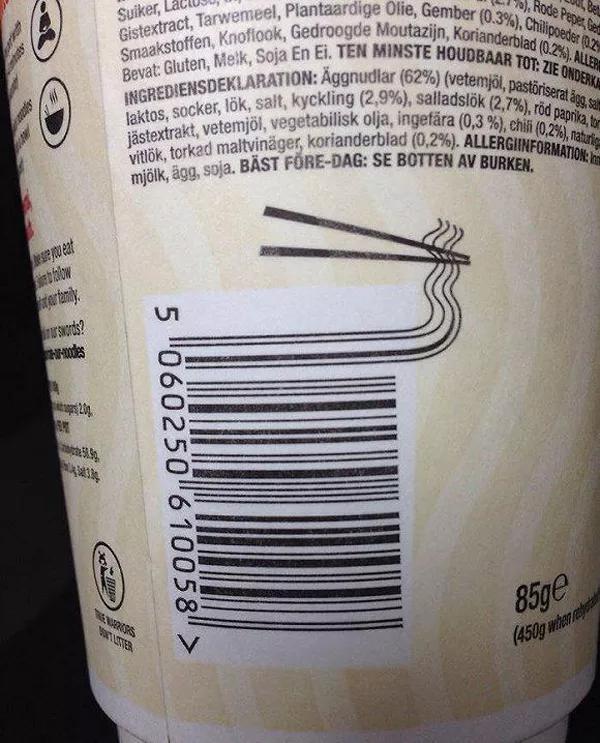 意大利面的條形碼設計也很簡單,卻十分有趣,上面有叉子叉起一大捆,但是下面齊刷刷的下來,讓強迫癥患者特別滿足。