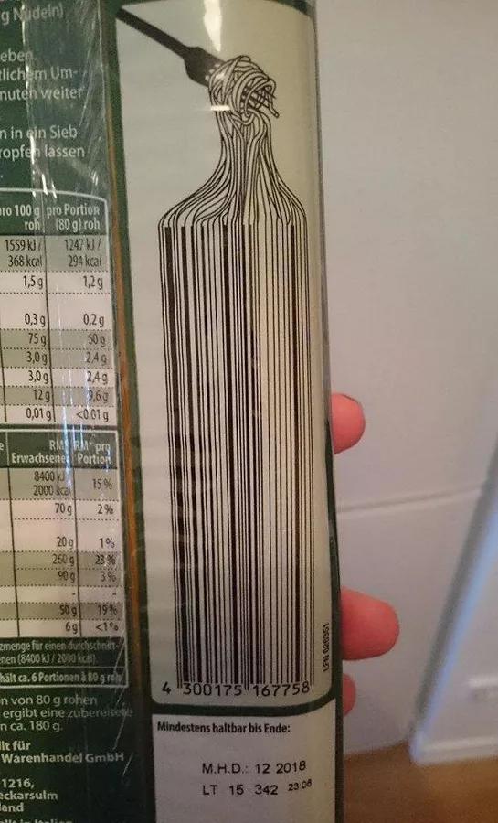 下面這個意大利面的條形碼與上面的面條條形碼有同樣設計。