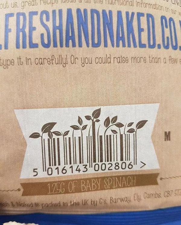 兒童菠菜的條形碼很Q哦,幾個嫩芽在茁壯的成長。話說小時候接受菠菜還是從大力水手開始的,這個條形碼會幫助孩子吃菠菜嗎?