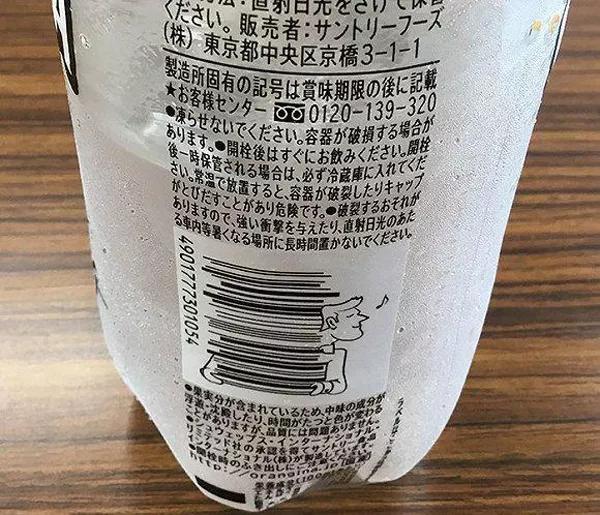 這是日本某洗潔精品牌的條形碼,被設計成了一個服務員抱著一大摞盤子的樣子,但是服務員卻還愉快的哼著歌,看起來這個洗潔精的作用真的在線。