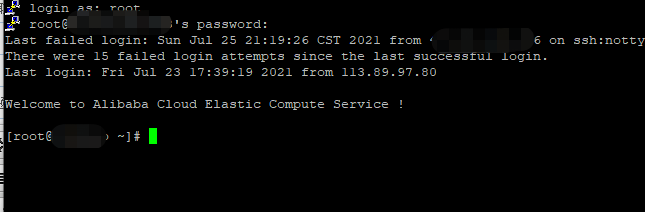 二、進入命今界面,如下圖,輸入服務器帳號和密碼,密碼是不可見的,所以輸入就行,不要以為界面沒顯示,其實是己輸入。三、
