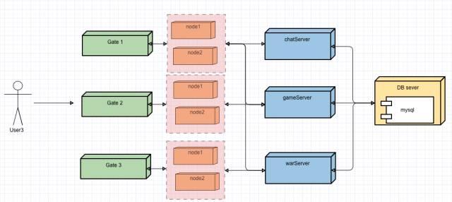 網關服務器: 在類型一種的架構中,玩家在多個地圖跳轉或者場景切換的時候采用跳轉的模式,以此進行跳轉不同的服務器。還有一種方式是把這些服務器的節點都通過網關服務器管理,玩家和網關服務器交互,每個場景或者服務器切換的時候,也有網關服務器統一來交換數據,如此玩家操作會比較流暢。