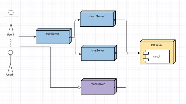 玩家先登錄“大廳服務器”,然后選擇組隊游戲的功能,服務器會通知參與的所有游戲客戶端,新開一條連接到房間服務器上,這樣所有參與的用戶就能在房間服務器里進行游戲交互了。