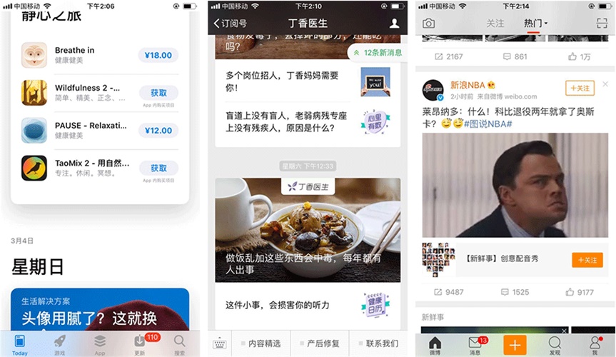 示例如下,分別是 APP Store,微信公眾號,微博的截圖。