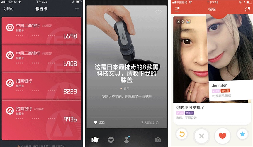 示例如下,分別是支付寶,ZUO,探探的截圖。