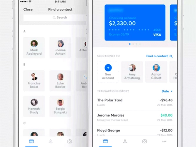 示例如下:是大海從 dribbble 上找來的設計,通訊錄的設計利用了卡片設計。