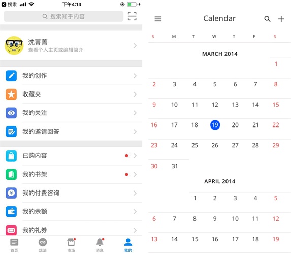 下圖中:知乎的「個人中心」,來源于網絡的日歷設計。