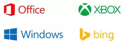 微軟: Logo 中的紅、綠、藍、黃四種顏色,分別代表微軟旗下最具標志性的四款產品及其相關的業務。 紅色代表 Office, 綠色代表 Xbox, 藍色代表 Windows 10, 黃色代表必應搜索。
