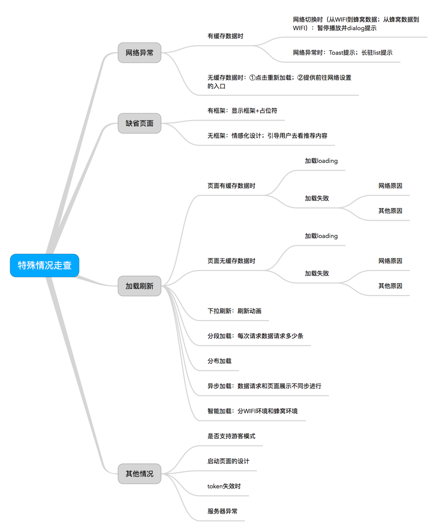 不同產品根據自身的特點,需要走查的點是不一樣的,例如:涉及多媒體播放和下載的產品,才需要考慮網絡環境切換時的情況;必須強制登錄的產品就不需要考慮游客模式的設計,等等。