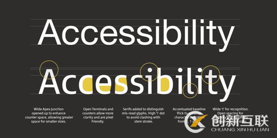 要注意的事情是,包容性設(shè)計并不是意味著非得犧牲優(yōu)雅和個性。一款精心設(shè)計、可訪問性優(yōu)秀的字體是可以兼顧優(yōu)雅和個性的,不過高度的識別度和可讀性是核心,盡量包容更廣泛的用戶的需求。