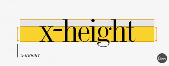 X高度通常指的是小寫字母的平均高度,之所以為稱為x高度是應(yīng)為通常拿字母x作為參考。諸如字母 “h” 和 “f” 超出X高度的部分被稱為 Ascender,也就是上伸部。而字母 “p” 和 “g” 下方低于X高度的部位則被稱為 Descender,即是下降部。