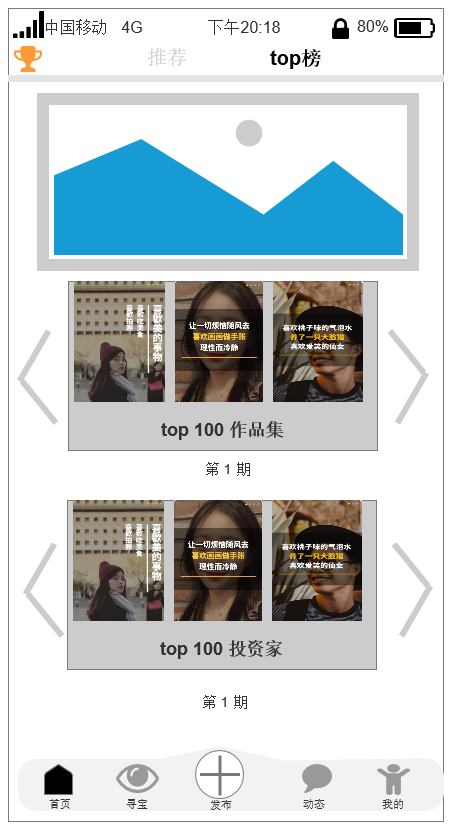 大家應(yīng)該發(fā)現(xiàn)我把top榜放到了一個(gè)很重要的位置——首頁(yè),和推薦的內(nèi)容幾乎平起平坐,很少哪個(gè)產(chǎn)品如此重視。在這個(gè)產(chǎn)品中,top榜是動(dòng)力的源泉且是關(guān)系鏈產(chǎn)生的重要途徑。