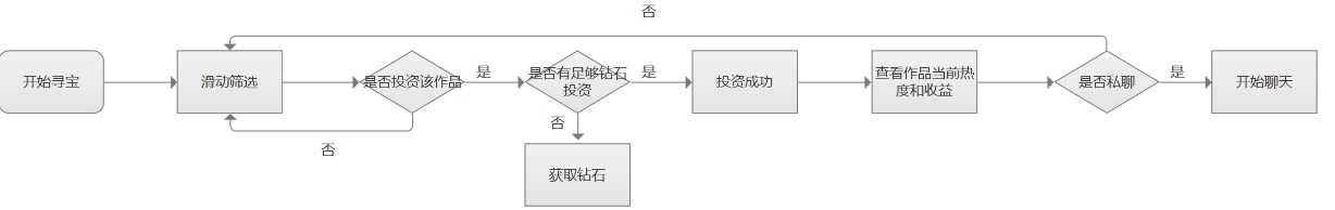 以上流程的中心化思想表現(xiàn)在篩選上面,一般平臺(tái)的篩選都是通過(guò)人工或者算法篩選,進(jìn)入推薦頁(yè)面,而這個(gè)產(chǎn)品把篩選的權(quán)力完全的交給了用戶。為了防止某些用戶的惡意,一方面利用投資需要消耗鉆石的規(guī)則,減少了了用戶的隨意篩選,另一方面設(shè)置了最少股東的數(shù)量,減小了個(gè)人的權(quán)力。