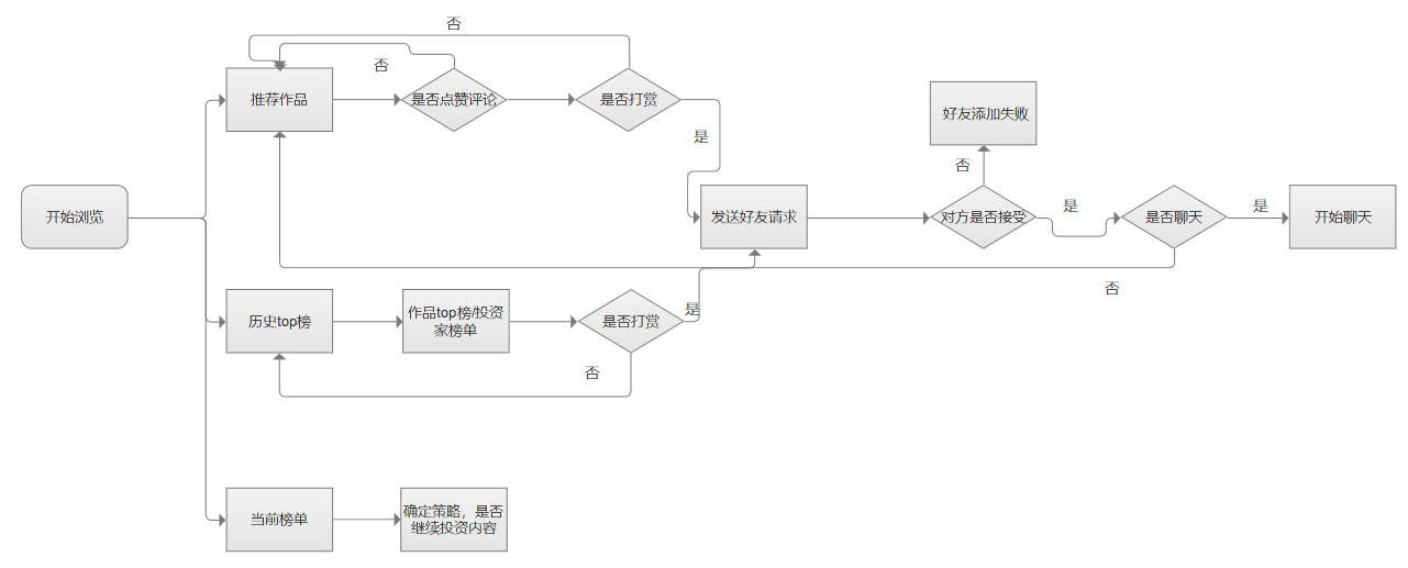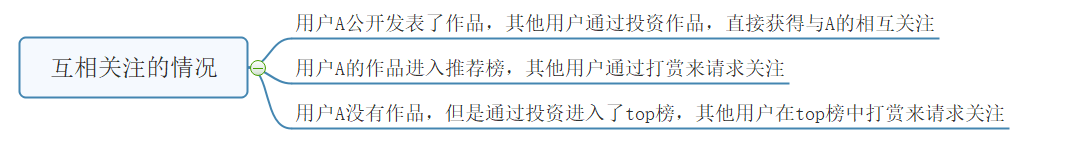 如果用戶A從來(lái)沒(méi)有產(chǎn)生任何內(nèi)容,那么其他用戶也無(wú)法關(guān)注他,也就是A無(wú)法被關(guān)注,但是A可以通過(guò)投資作品來(lái)主動(dòng)的獲得互相關(guān)注的權(quán)力,或者進(jìn)入投資者top榜來(lái)獲得關(guān)注的機(jī)會(huì)。