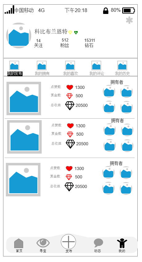 這原型的制作是我假設(shè)dau已經(jīng)有百萬(wàn)了,如果是一開(kāi)始的版本,我會(huì)去掉很多功能,比如“動(dòng)態(tài)”這個(gè)板塊,“我的”板塊里的諸多信息也都不適合放在一開(kāi)始的版本。