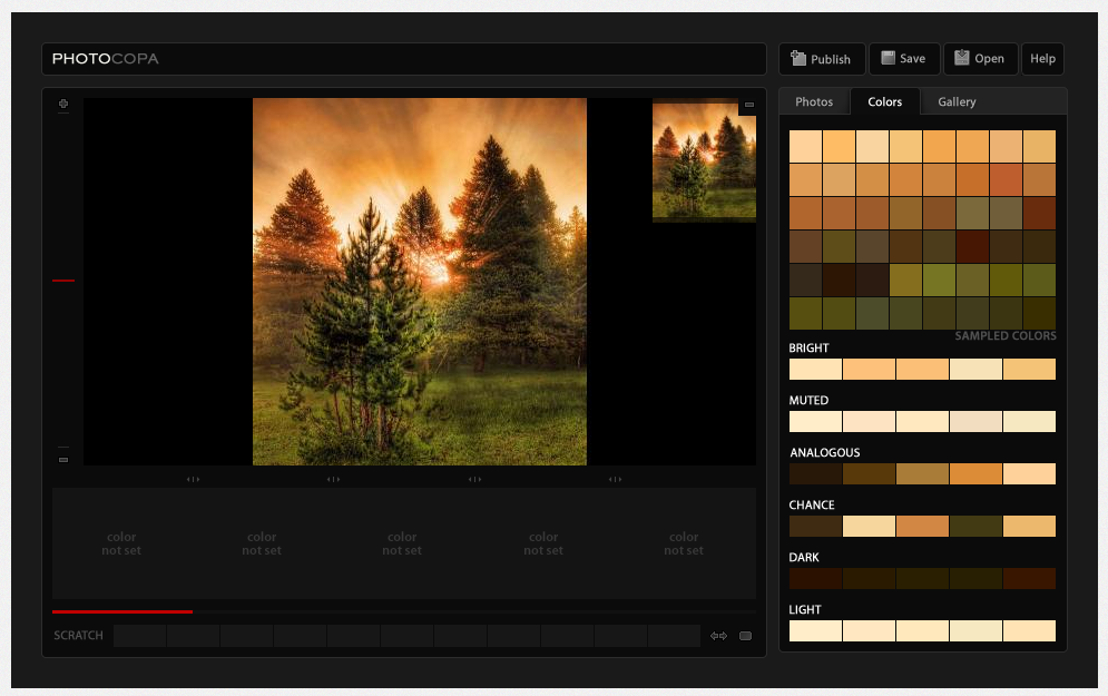 默認情況下,你可以直接點擊”Colors”選項卡直接開始你的調色。同時,你也可以進入”Photos”選項卡,使用照片來抓取配色方案。