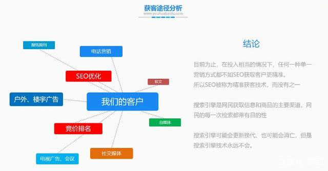 目前為止,搜索引擎依然是網民獲取信息的最重要渠道,每天有數十億次的檢索是通過搜索引擎獲取服務信息的。我為什么極力推薦SEO?因為SEO主要通過搜索引擎自然排序規則,對網站內部及外部的調整優化,改進網頁快照在搜索引擎中的關鍵詞自然排序,目的是獲得更多目標流量,從而達成客戶轉化及品牌建設的目標。