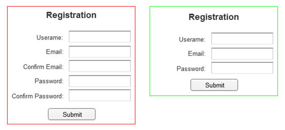 幾乎每個人都經(jīng)歷過這樣一個事實:注冊時被要求填寫郵箱地址兩次或重復輸入密碼。但是這其實是沒有必要的。僅填寫一次,因為用戶一般都記得自己常用的郵箱地址和密碼。假設哪天用戶忘記密碼了可以通過郵箱找回,再多此一舉填寫兩次反而更加容易導致用戶流失。