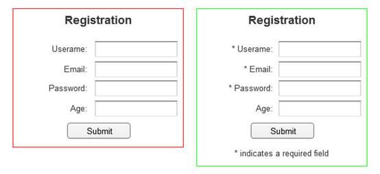 如果在注冊表單里面有可選字段,那么我們就要強調(diào)必填字段。通常一個小標志例如星號(*)就足夠了。它可以讓用戶自覺發(fā)現(xiàn)并填寫必須填的字段。