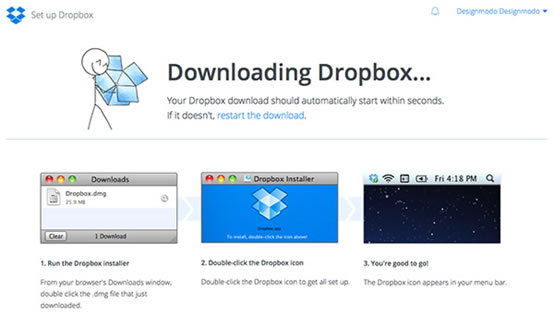 Dropbox在這一方面做得很好。用戶在創(chuàng)建賬戶是自動重定向到dropbox安裝助理。